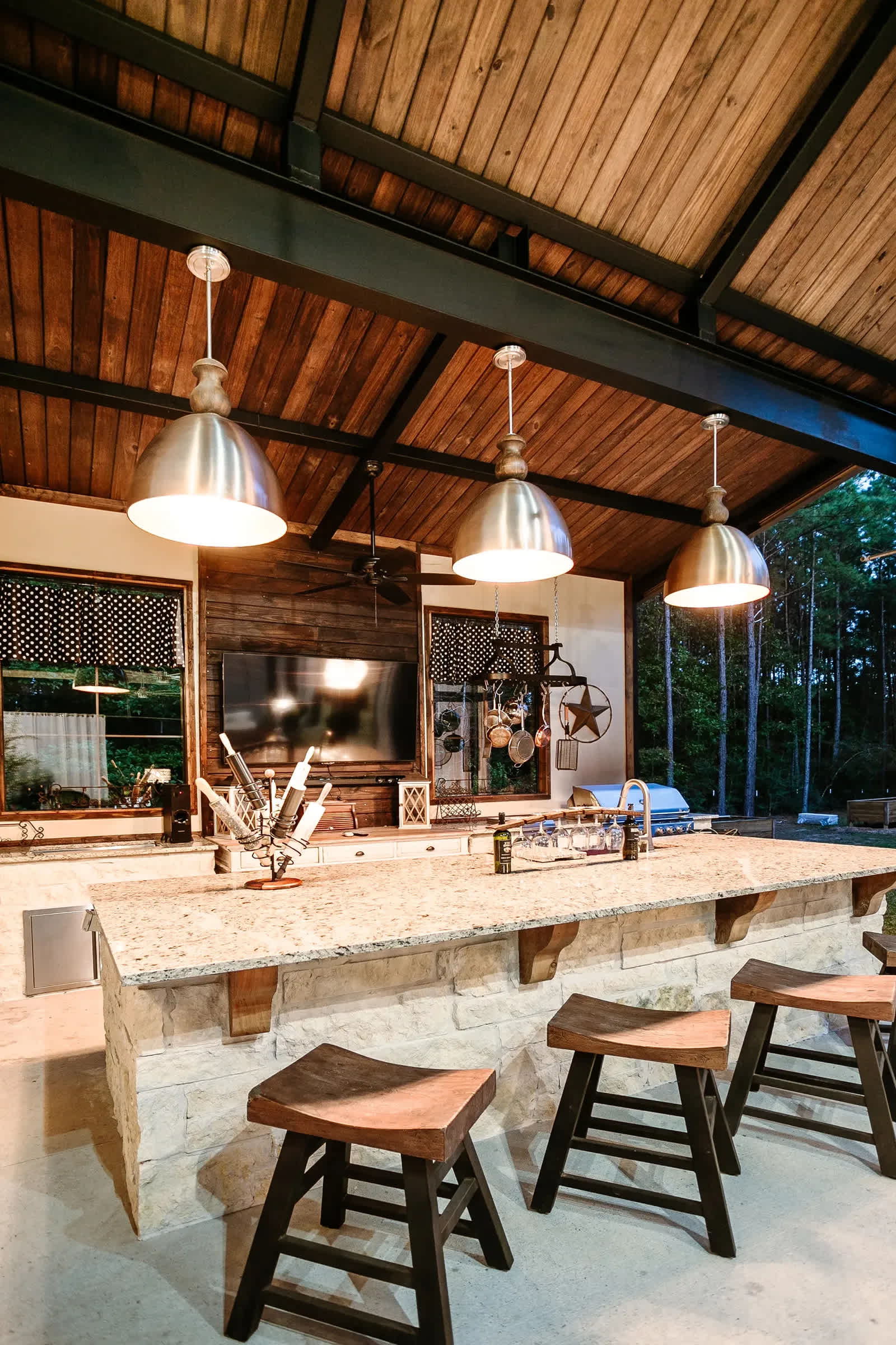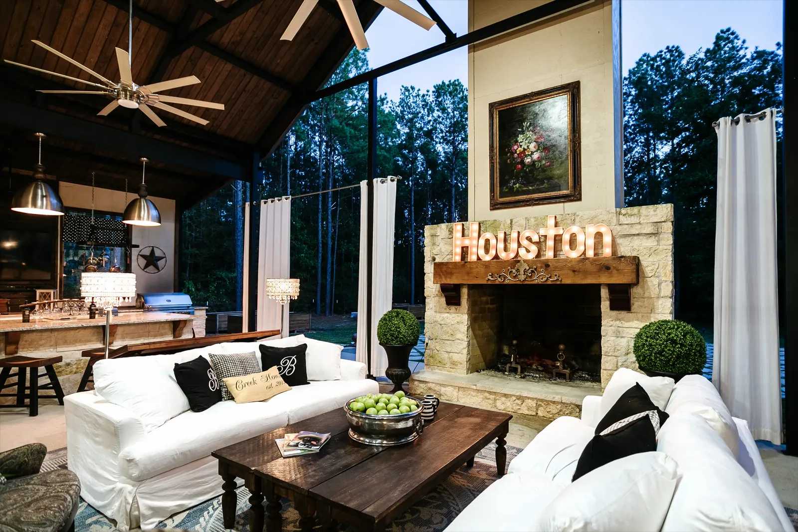 The last two pictures at the bottom of the page are of the amazing outdoor space that screams “hangout here”! Between the cozy couches and fireplace and the fully functional kitchen, it is the perfect place to entertain guests or kick your feet up with a good book. Not pictured here is a full glass garage door, that helps encompass the indoor/outdoor living space and add extra natural light to the interior space.
