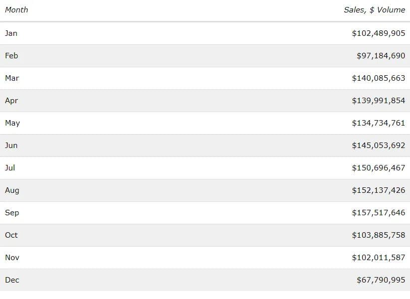 • Volume of Sales: $1,401,339,444 (At the bottom of the page is a table showing the monthly sales volume totals.)
